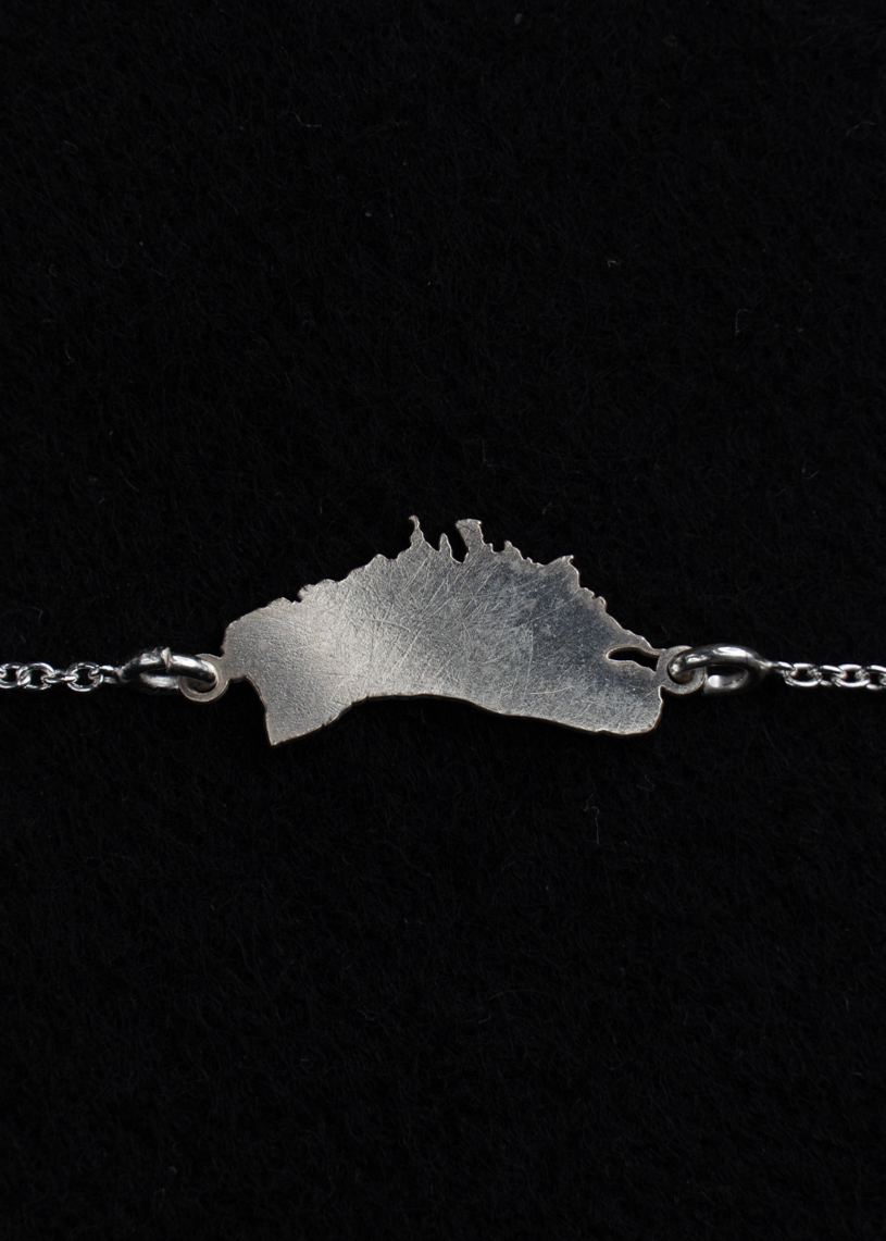 Esta pulsera en plata de Ley 925 reproduce la silueta de la isla, creando un vínculo tangible con tus recuerdos y emociones más profundos.